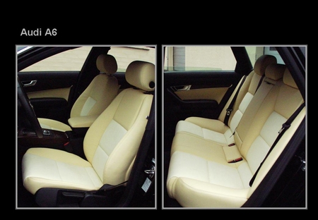 Værkstedet har valgt denne Fabia RS til vinterens flotteste kabine. Dette er en kombination ud over det sædvanlige. Design: 2-farvet nappa-læder, stramsiddende, dobbeltsyning (sort tråd). RS logoet er hentet fra det originale betræk.