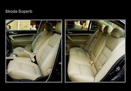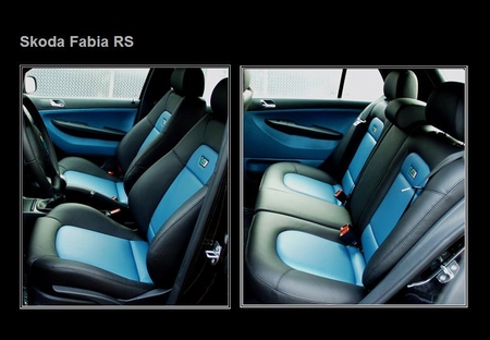 Vinterens flotteste kabine: Værkstedet har valgt denne Fabia RS til vinterens flotteste kabine. Dette er en kombination ud over det sædvanlige. Design: 2-farvet nappa-læder, stramsiddende, dobbeltsyning (sort tråd). RS logoet er hentet fra det originale betræk.